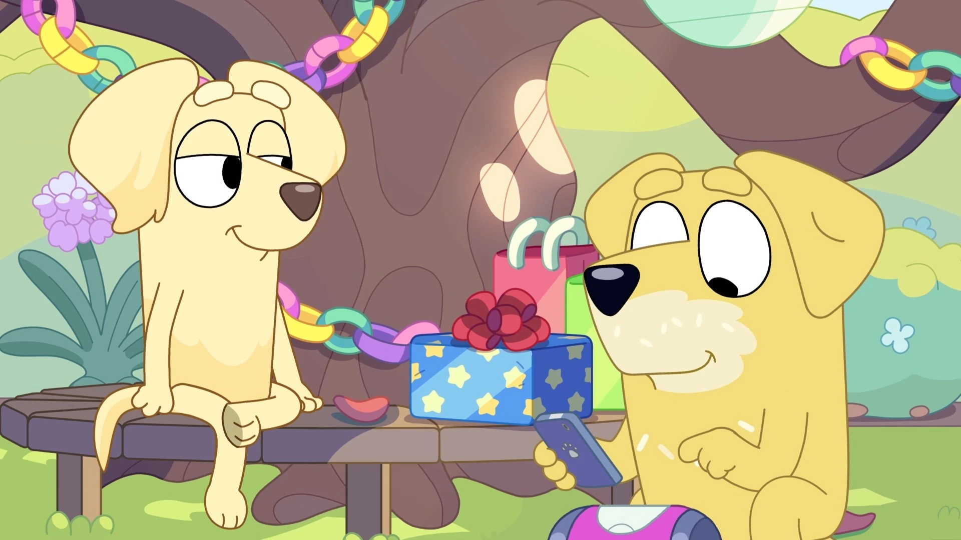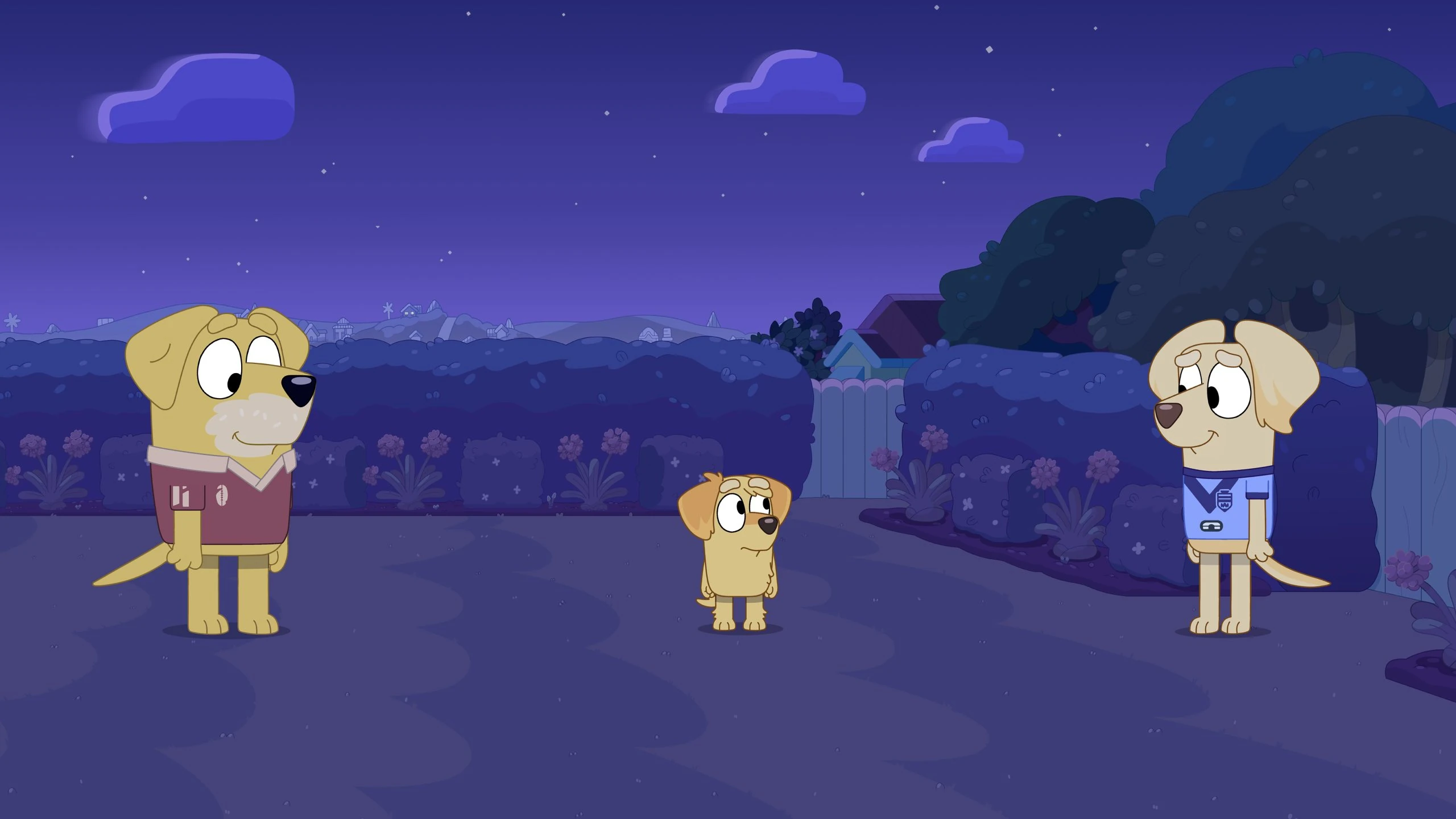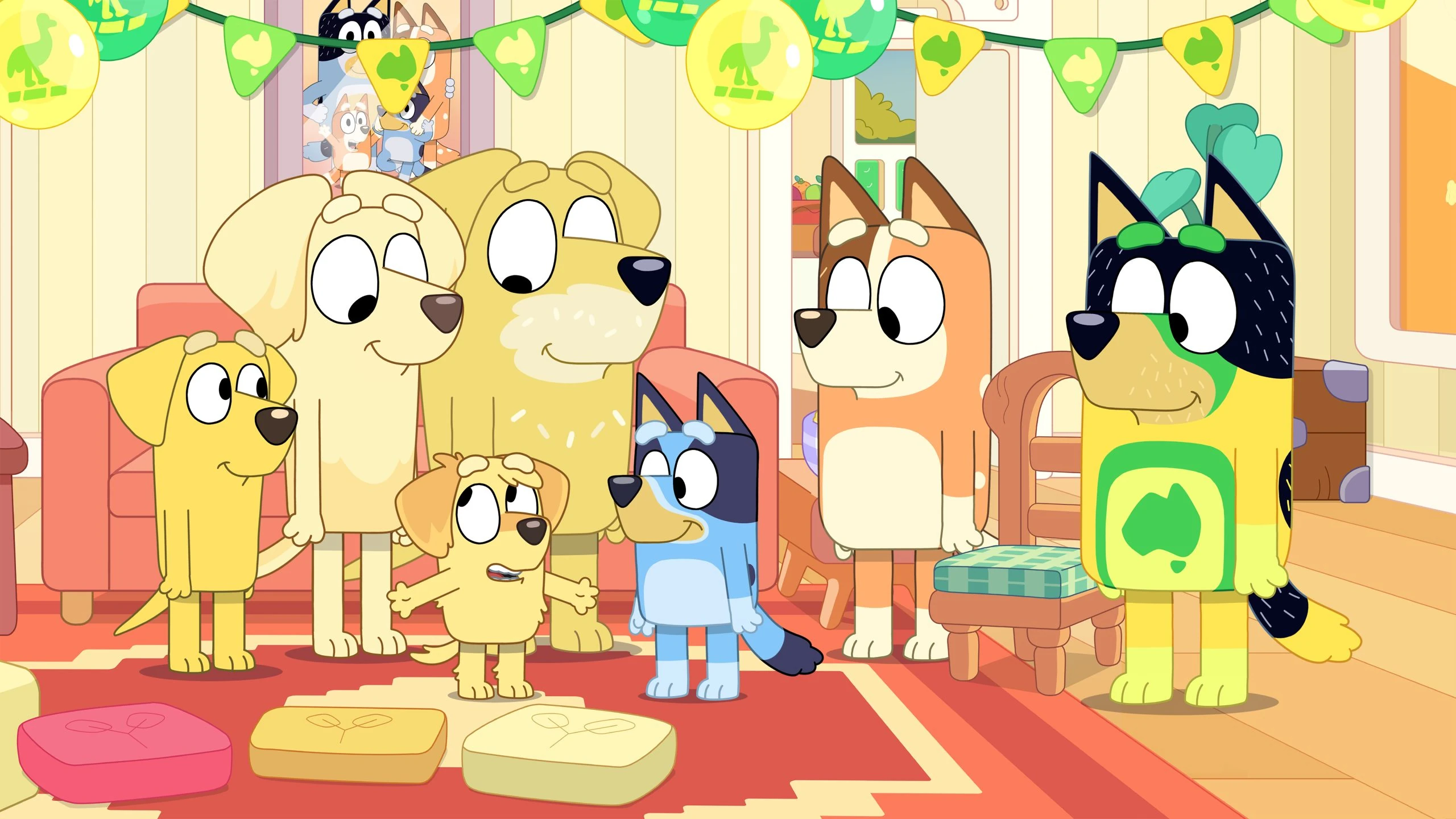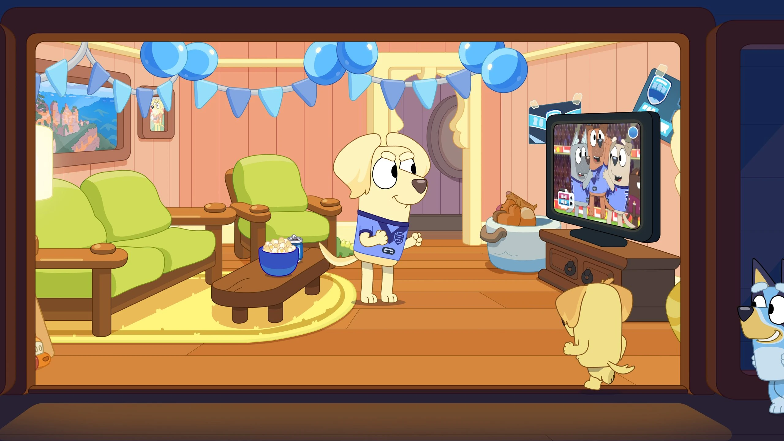 As excitement for the Decider built up, the Labradors found themselves torn in twain - Pat, Lucky and Chucky joined Clan Heeler rooting for the Maroons, with Janelle alone back at home base rooting for her home team, the Blues. The Decider was an important part of Aussie footy where Queensland faces off against New South Wales - the very region Janelle originated from. And son Chucky remained indecisive, with Bluey, a Maroon barracker despite being blue ("It's confusing.") helping him find his team.