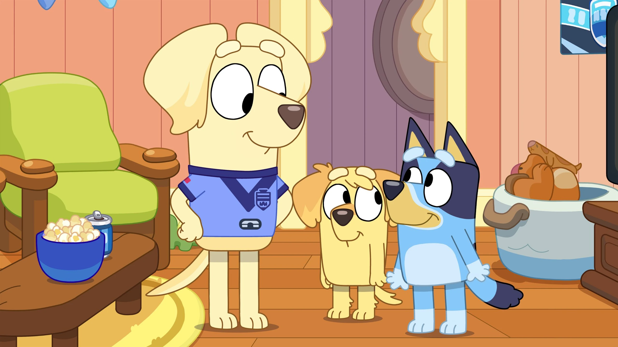 Immediately, the Maroons began to score and gained an initial upper hand against the Blues, leaving Janelle rather BLUE. Until the Blues scored some good runs, launching the Lonely Labrador into celebrations of joy! Seeing Janelle happy, Chucky requested Bluey follow him to the Labrador House to join her watchalong. Janelle welcomed her son to the house with open arms, and seeing Bluey there, welcomes the Maroon fan - despite not being happy at first, but considering Bluey's friendship with her, lets her in - with some popcorn, AND a quick Blues score for good measure! However, hope quickly faded away as the Maroons started to score once more... Chucky pointed out that the other side was dancing again.